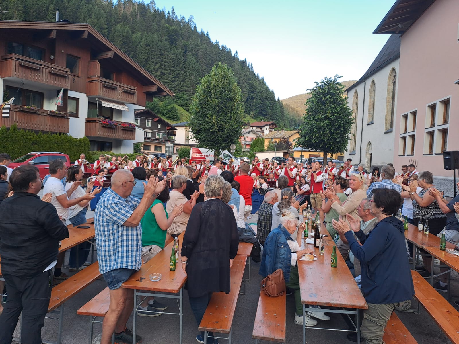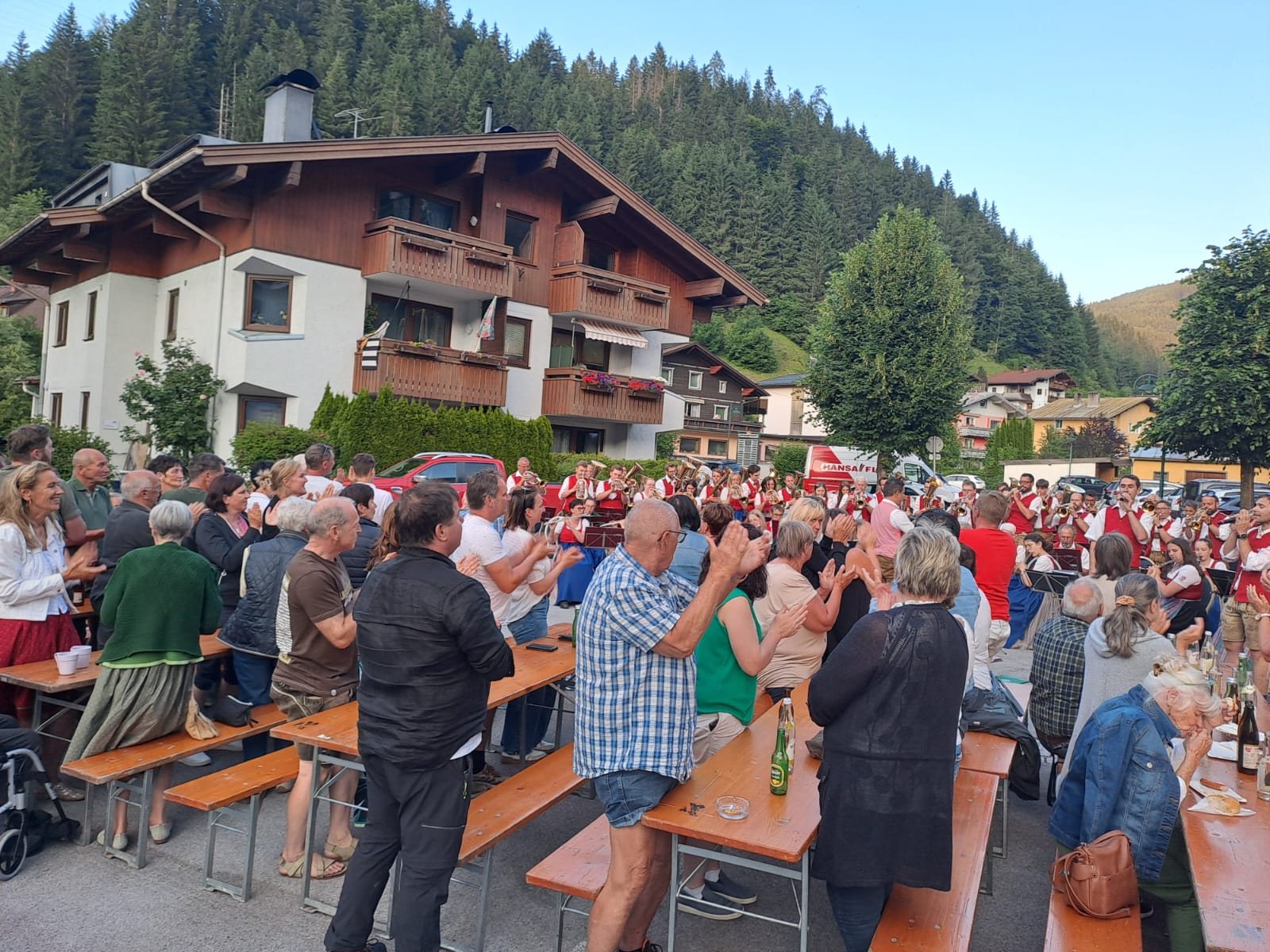 Kürzlich gaben insgesamt 86 Musikerinnen und Musiker der Musikkapellen Hüttau, Eben und St. Martin bei traumhaften Wetter ein wunderbares Platzkonzert vor dem SeneCura Sozialzentrum Hüttau. Viele Bewohnerinnen und Bewohner, Angehörige, Besucher aus den umliegenden Gemeinden lauschten diesem wirklich gelungenen Konzert. Für das leibliche Wohl war gesorgt und auch das Wetter hätte nicht schöner sein können!